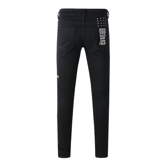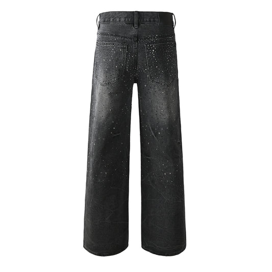 Men’s Oversized Streetwear Jeans in Vintage Black with Full-Length Glitter Detailing and Urban Luxury Vibe 105