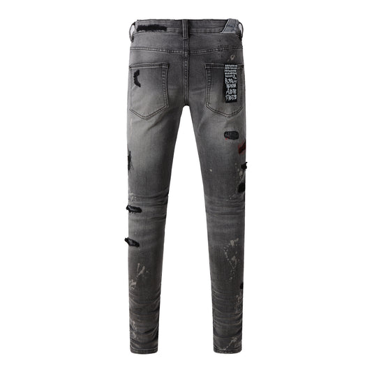 Jeans With Light Dark Paint Distressed Fashion Trend High 9040