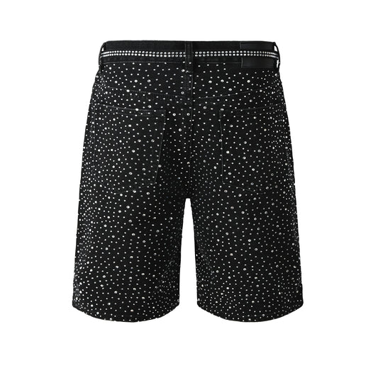 Mens Black Denim Shorts with Allover Rhinestone Embellishments and Sparkling Party Street Style 5095