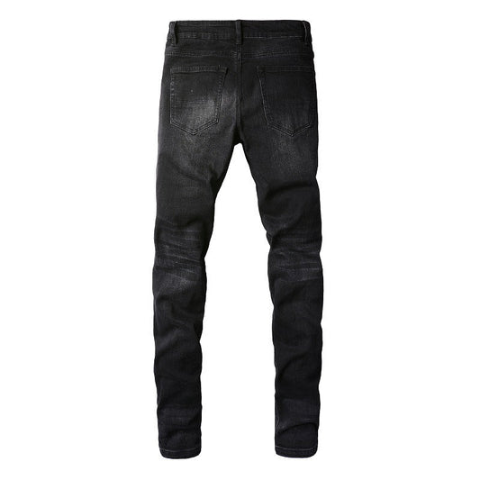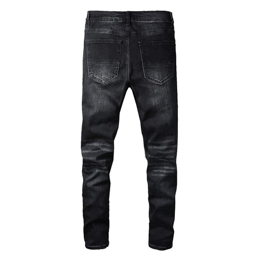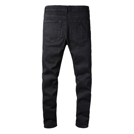 High Street Ripped Patch Jeans Men's Patch Elastic Slim Small Foot Jeans 876