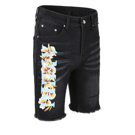 High Street Digital Printing Stretch Slim Fit Men's Black Short Jeans #846