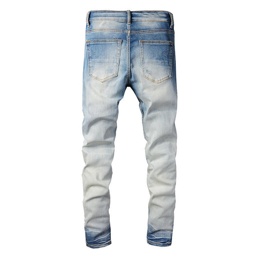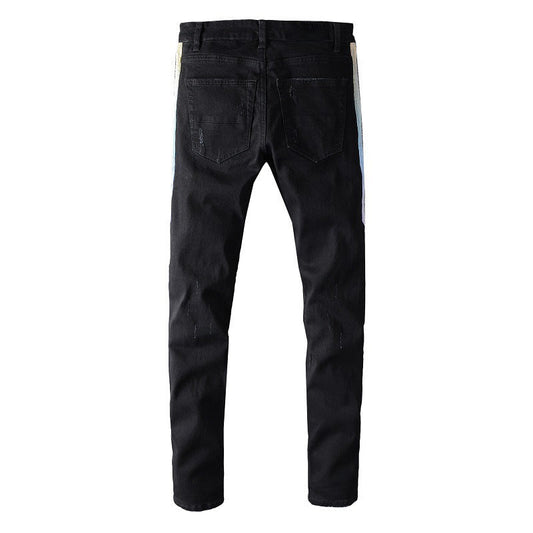 8616 Jeans Paint Ripped Patch Men's Jeans Slim High Street