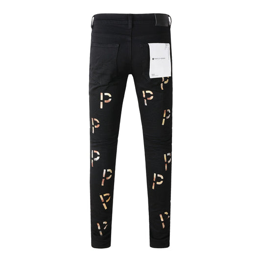 New Black Letter Printing Vintage Personality Fashion Ripped Jeans 9008