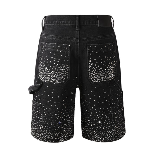 Men’s Black Rhinestone Denim Shorts with Firework Crystal Design 5103